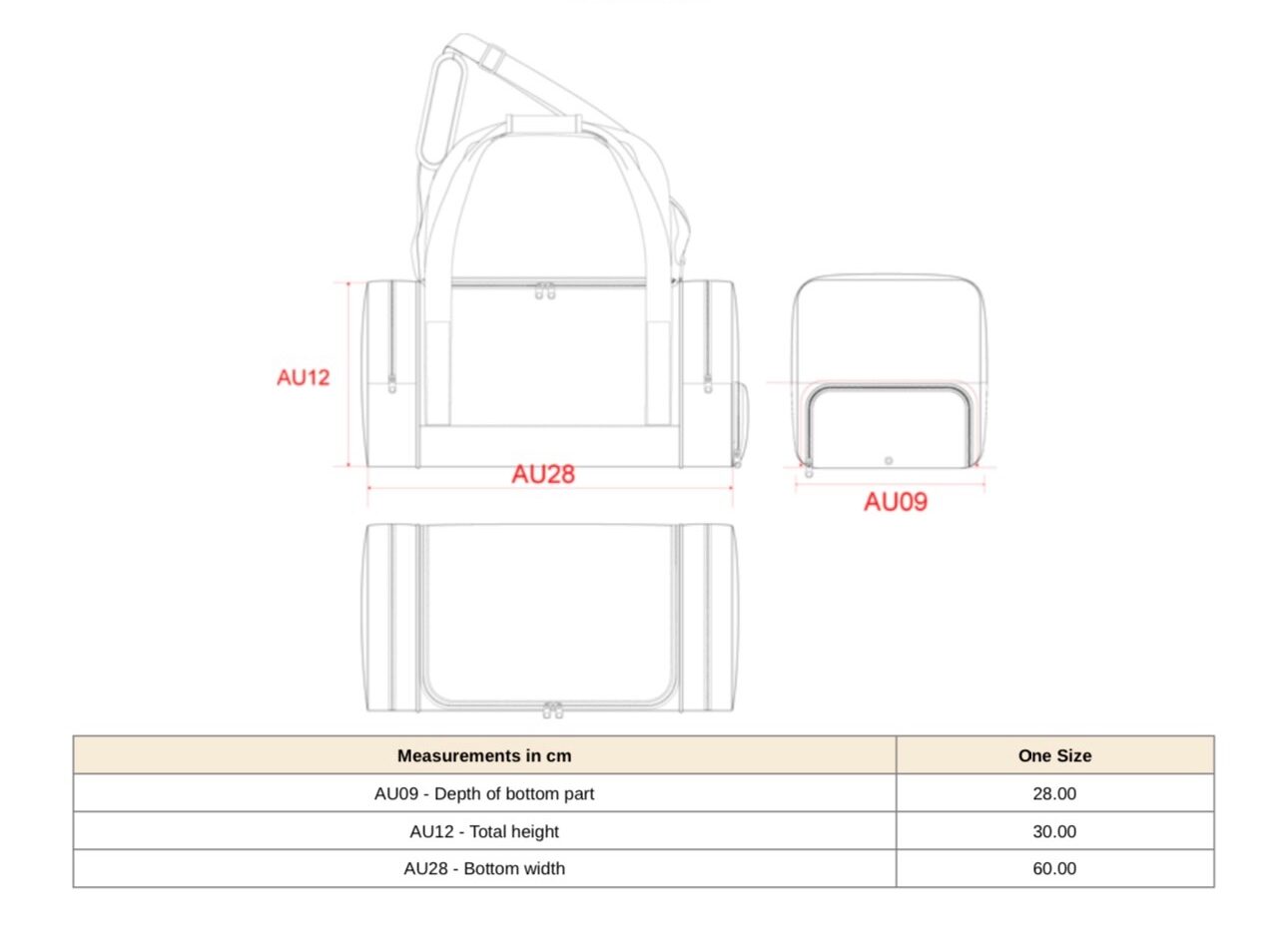 Dos bolsillos en los laterales y un compartimento para guardar zapatos, correa de