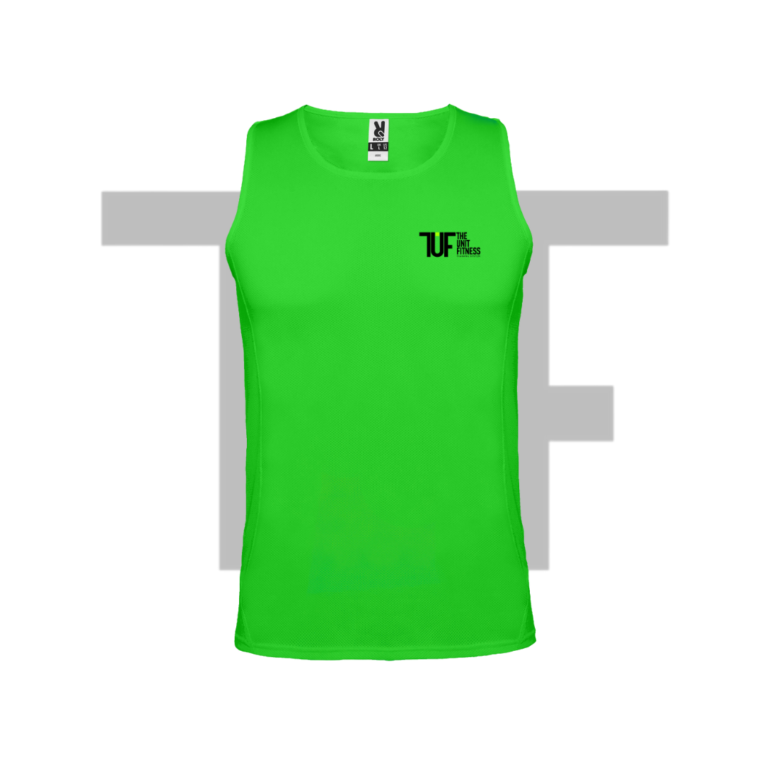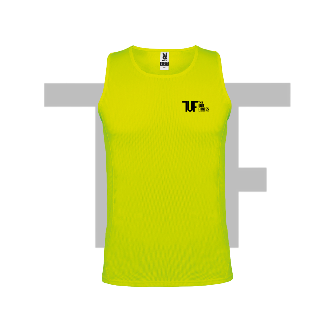 Camiseta técnica tirantes transpirable. Sisas y cuello ribeteados en el mismo tejido.