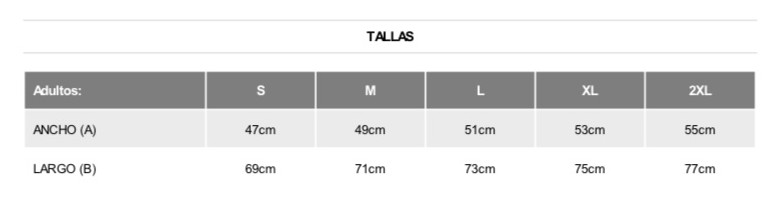 | Tamaño | S, M, L, XL, XXL |