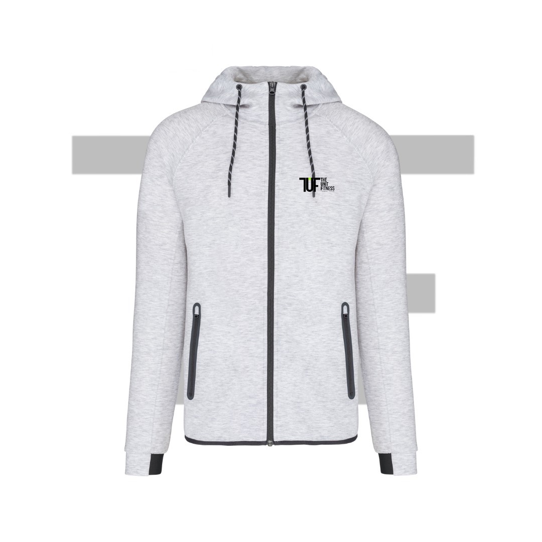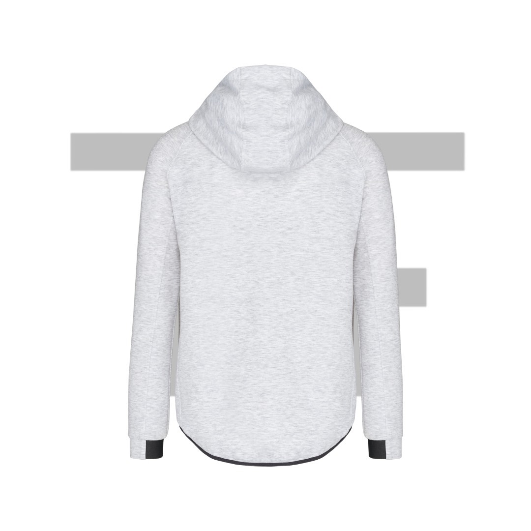 Forro de capucha punto jersey de 65% poliéster/ 35% viscosa y cordón de ajuste bicolor con la punta en plástico.