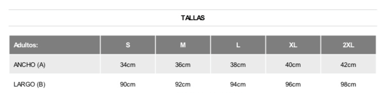 | Tamaño | S, M, L, XL, XXL |