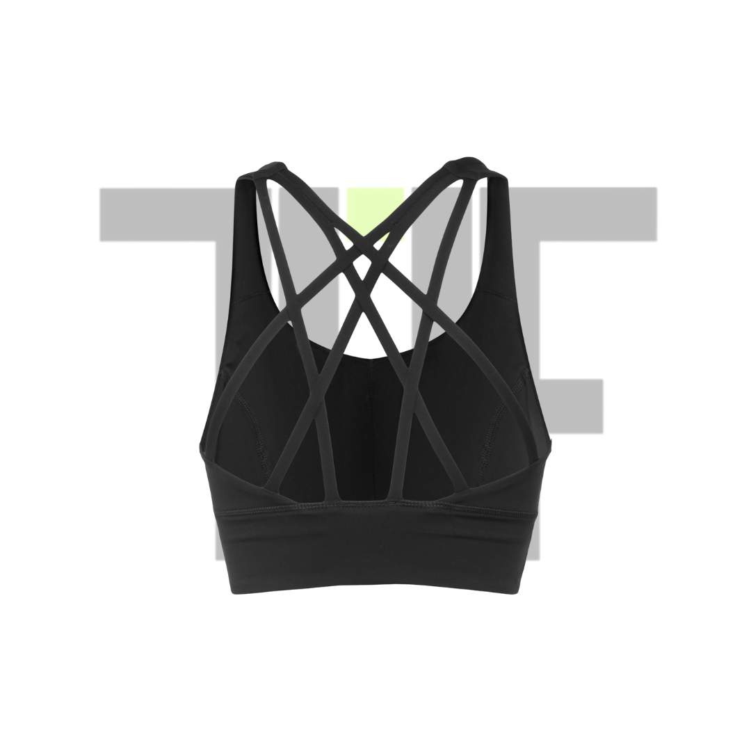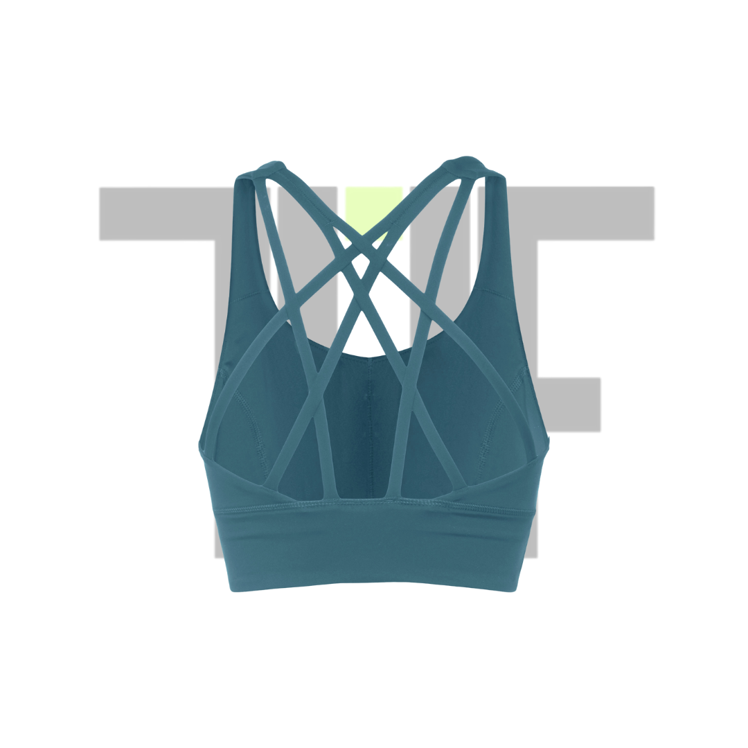 Escote redondo y espalda con tirantes cruzados que le dan diseño a la prenda.